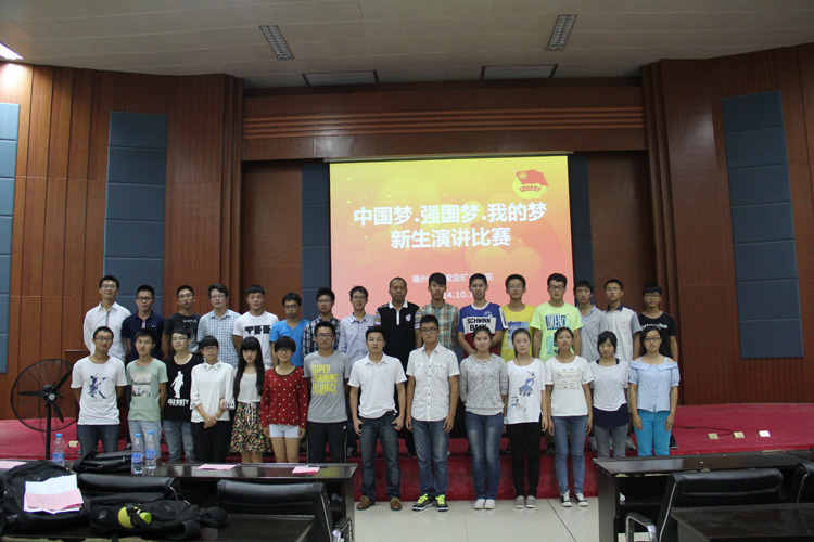 2014年10月7日晚六时,福州大学紫金矿业德州扑克网页版 团委学生会在德州扑克网页版 三楼学术报告厅成功举办了主题为“中国梦 强国梦 我的梦”的演讲比赛.本次演讲比赛面向2014级新生,共吸引了24名2014级新生参加,同时,100多位2014级同学到场观摩了本次比赛。